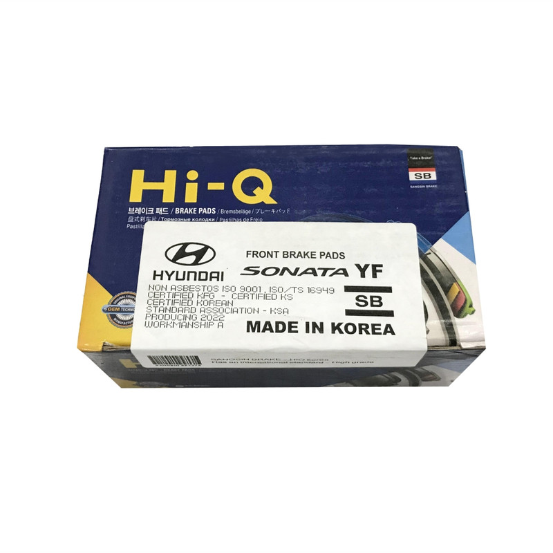 این لنت ترمز مختص جلو هیوندای سوناتا YF میباشد و ساخت کشور کره جنوبی است. لنت های برند Hi-Q ساخت معتبرترین کارخانه لنت سازی کره جنوبی که سانگسین است میباشد. کارخانه سانگسین بزرگترین تامین کننده لنت های ترمز خط تولید خودروسازان و بازار داخلی کره جنوبی است و به همین دلیل بهترین انتخاب برای خودرو های کره ای میباشد. متاسفانه Hi-Q در بین برندهای کره ای بیشترین نوع تقلبی را در بازار ایران دارد که با قیمت پایین تر بفروش میرسند ( در هنگام خرید حتماً به لیبل پلمپ کننده جعبه دقت نمایید ) لنت Hi-Q ضمن اینکه سازگاری کامل با شرایط اقلیمی ایران دارد کاملاً بیصدا میباشد و ترمز گیری عالی در تمام مواقع را به ارمغان می آورد ـ لنت های Hi-Q اصلی مطابق با قوانین استانداردی اروپا و آمریکا میباشند.